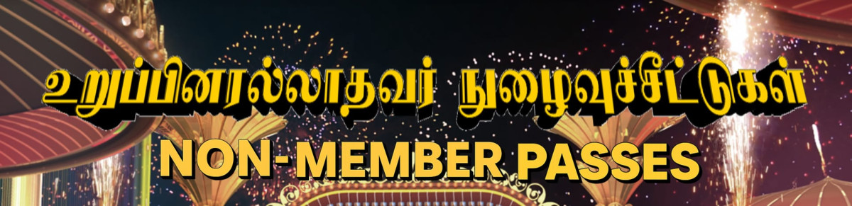 Deepavali Kondattam 2025 Tickets அனுமதிச்சீட்டுகள் வாங்க Members-login செய்து "நம்ம தமிழ்ச்சங்கம்" பக்கத்தைப்பார்க்கவும் / To buy tickets, please goto Members-login and visit "நம்ம தமிழ்ச்சங்கம்" page. If you are already logged in, please click on your name next to 'Home' menu option to see "நம்ம தமிழ்ச்சங்கம்". உறுப்பினரல்லாதோர் அனுமதிச்சீட்டுகள் வாங்க இங்கே சொடுக்கவும் /Click here to buy NonMember Tickets
